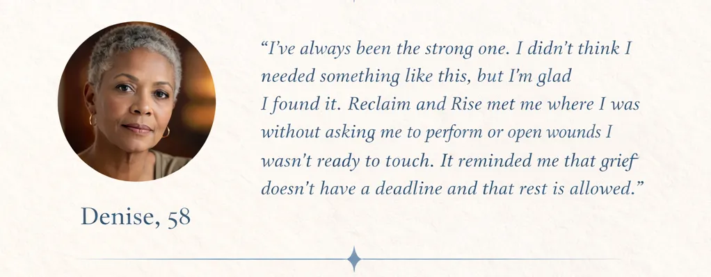 Through Reclaim and Rise, Christina offers gentle guidance, practical tools, and faith-centered encouragement for women navigating grief, transition, and life after loss. Her approach honors both the emotional journey and the steady presence of God, reminding women that rising does not mean forgetting. It means learning to move forward with grace, strength, and trust.
